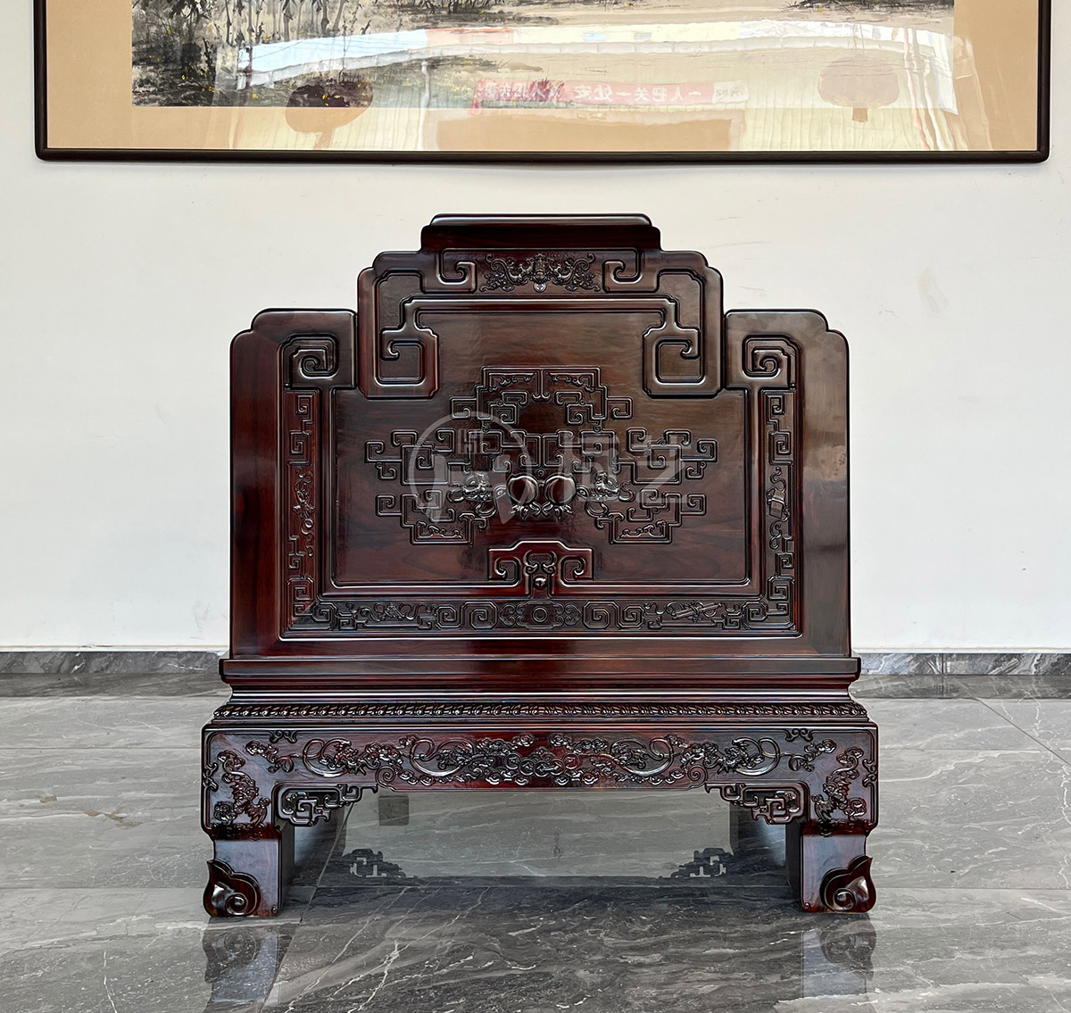 素面宝座沙发13件套 大果紫檀