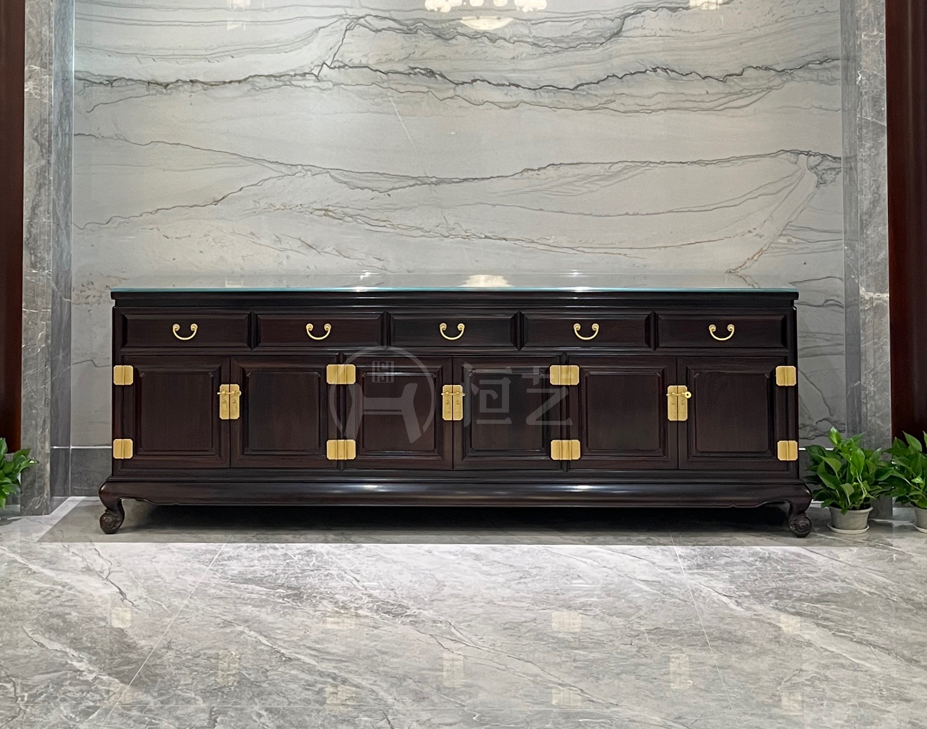 花鸟餐边柜 赞比亚紫檀
