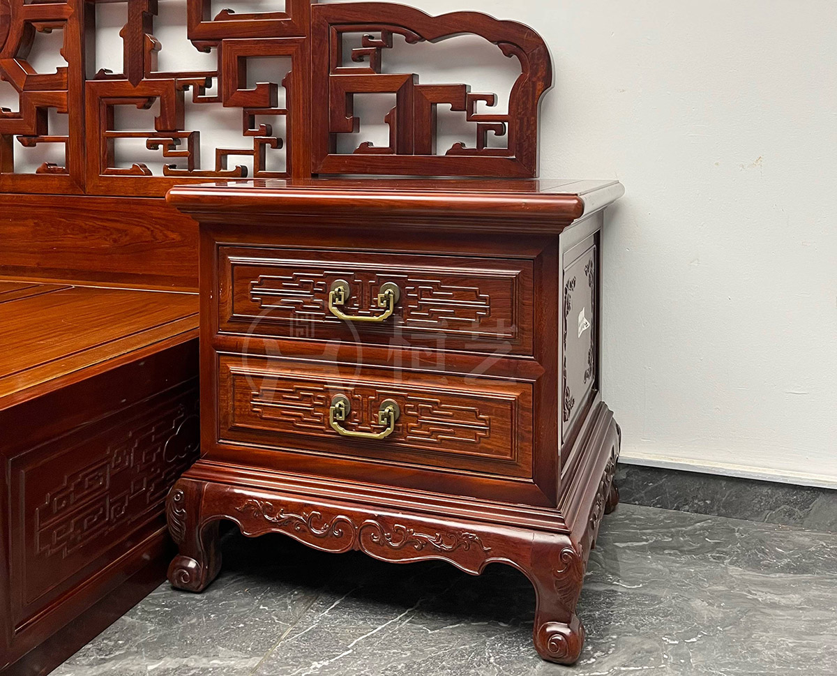 肆号洋花大床配床头柜 阔叶黄檀