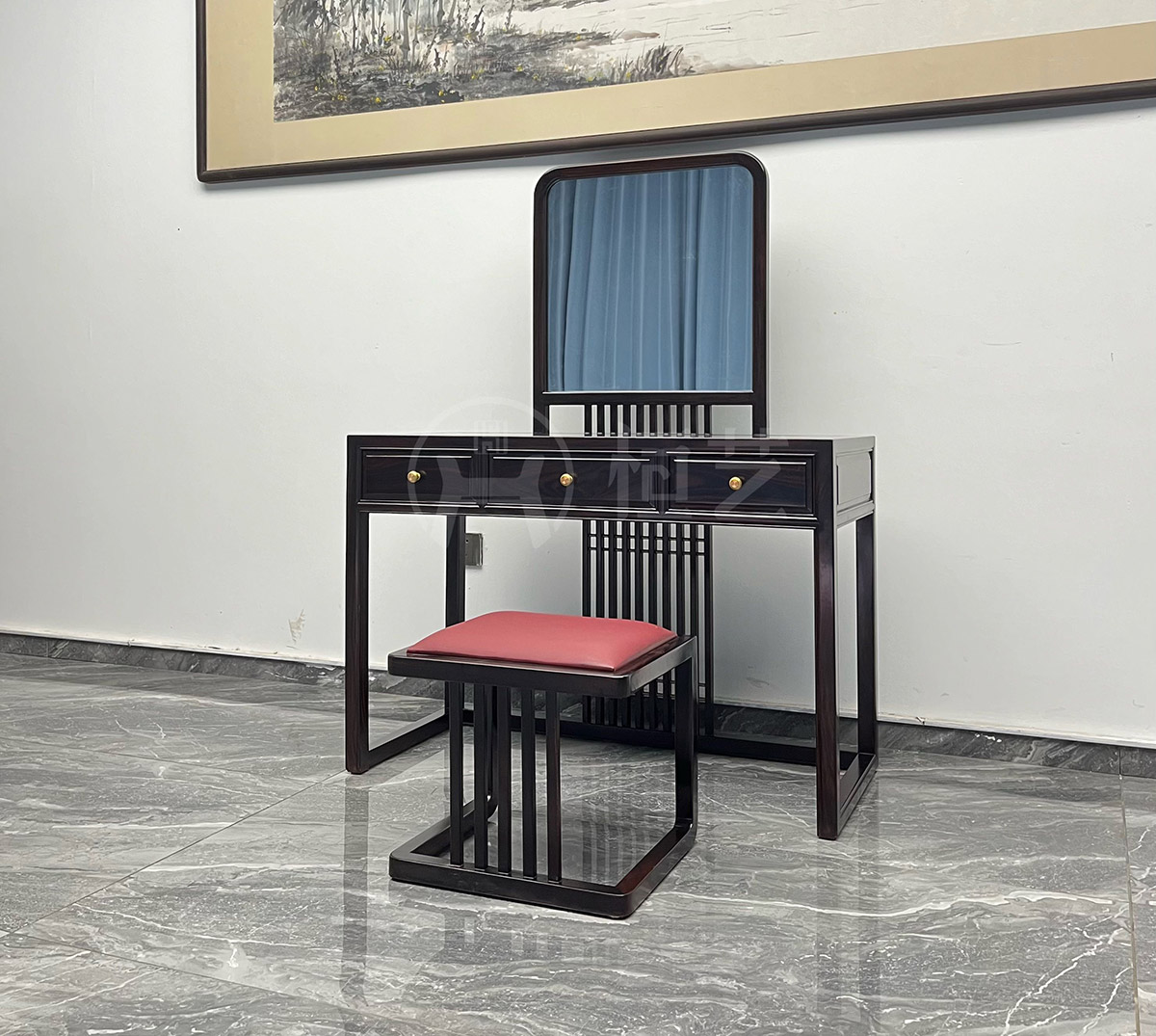 唐韵今风梳妆台配凳 阔叶黄檀